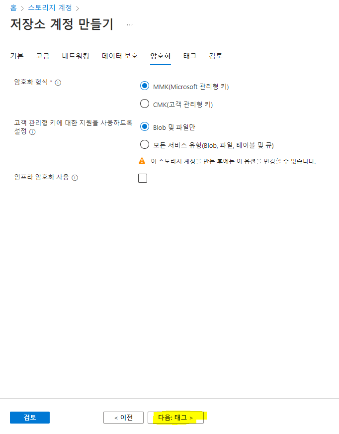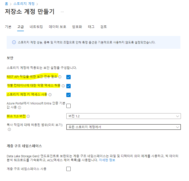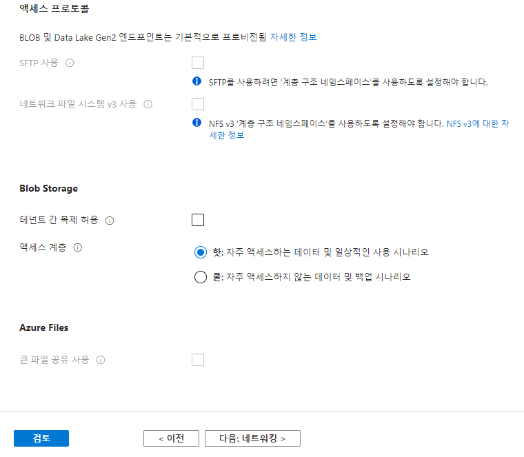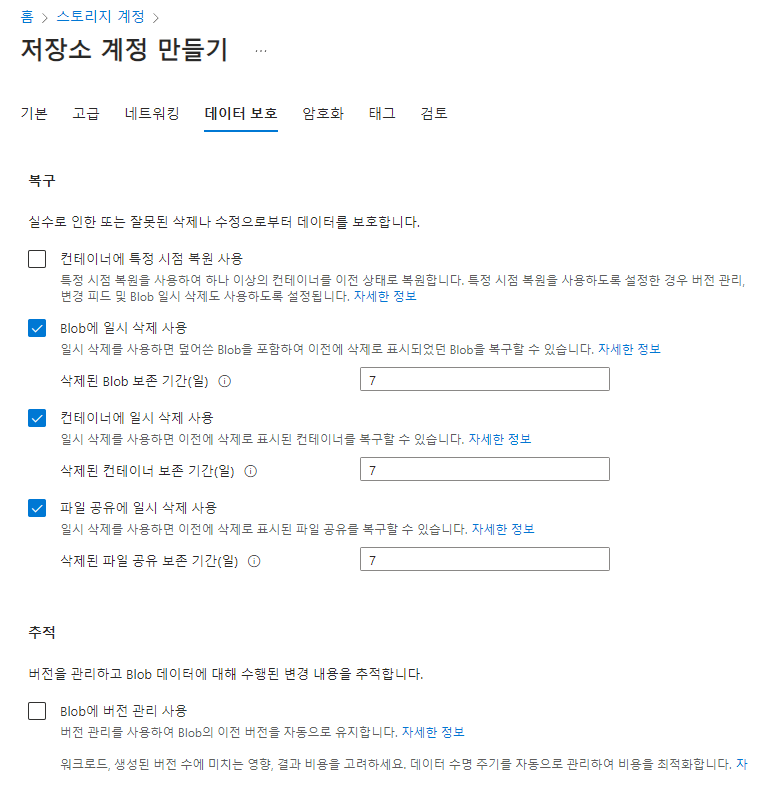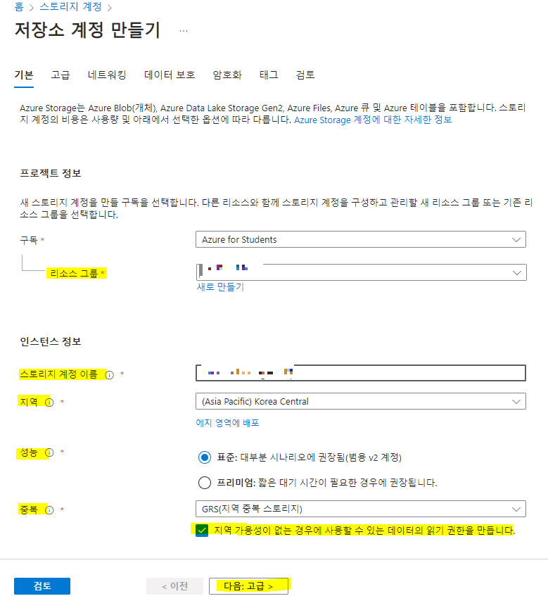 blobstorage는 자연스럽게 중복되도록 옵션이 구성되어서 기본값을 선택하겠음