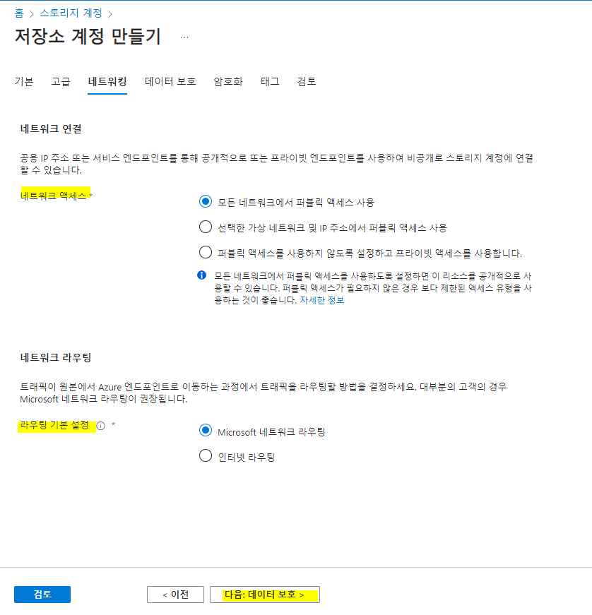 -> 왠만하면 Microsoft 네트워크 라우팅을 선택하는것이 좋음