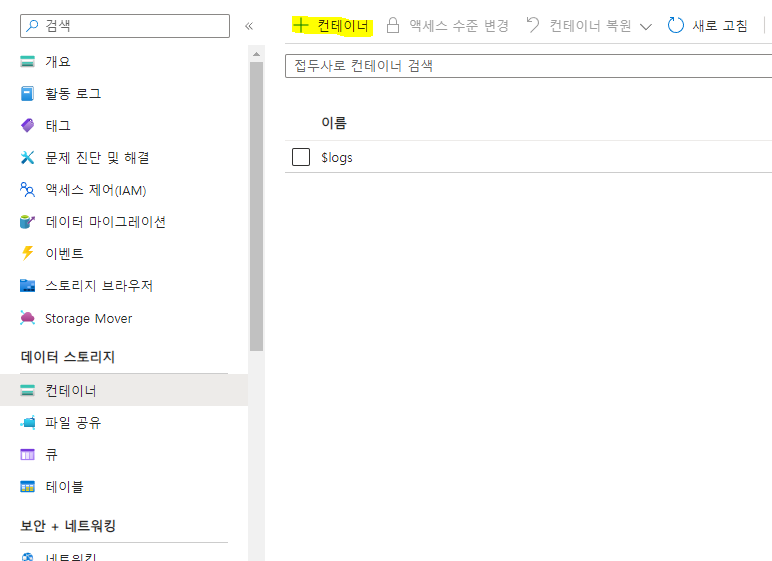 -> 개별컨테이너에 대한 익명 액세스 허용