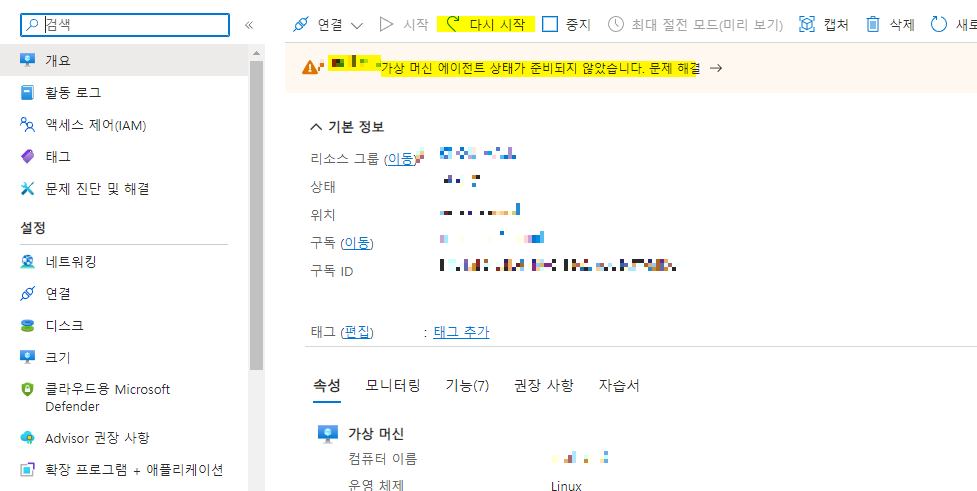 < 가상머신 에이전트 상태가 준비되지 않았습니다 오류 >