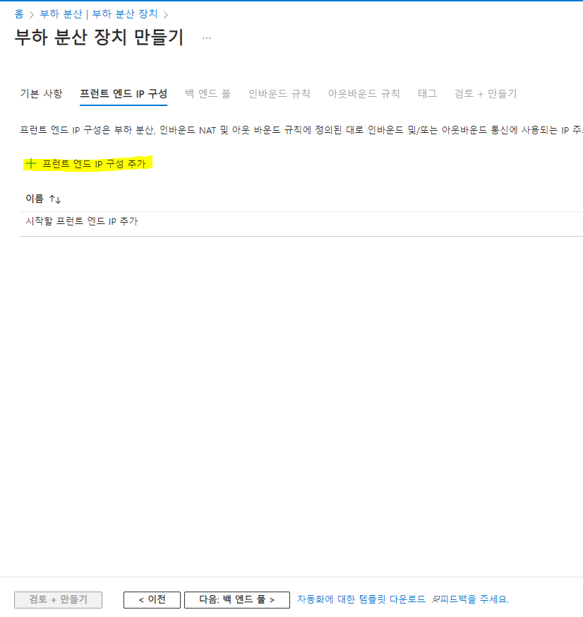 애저 검색창에 부하 분산 장치 검색해서 만들기를 클릭