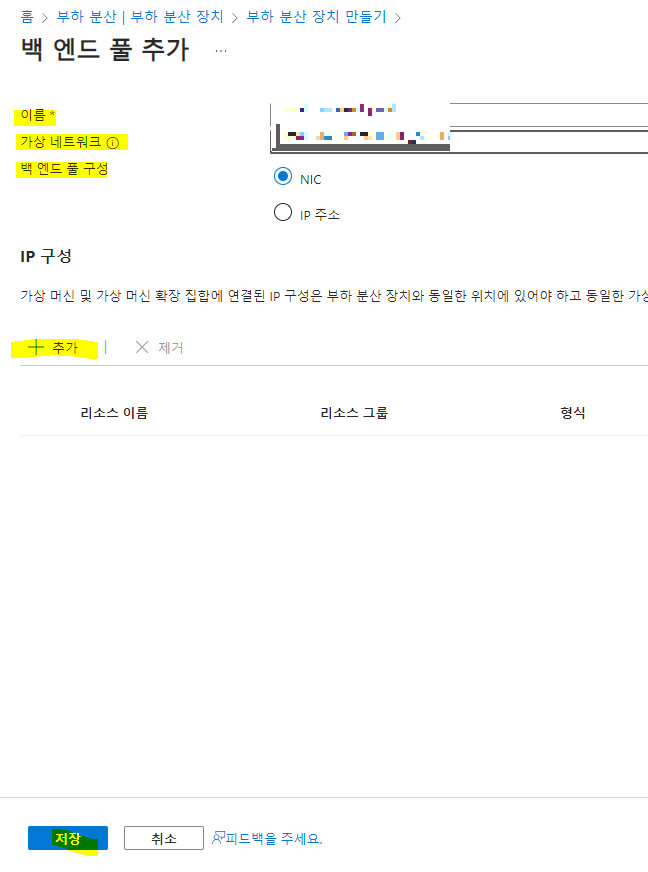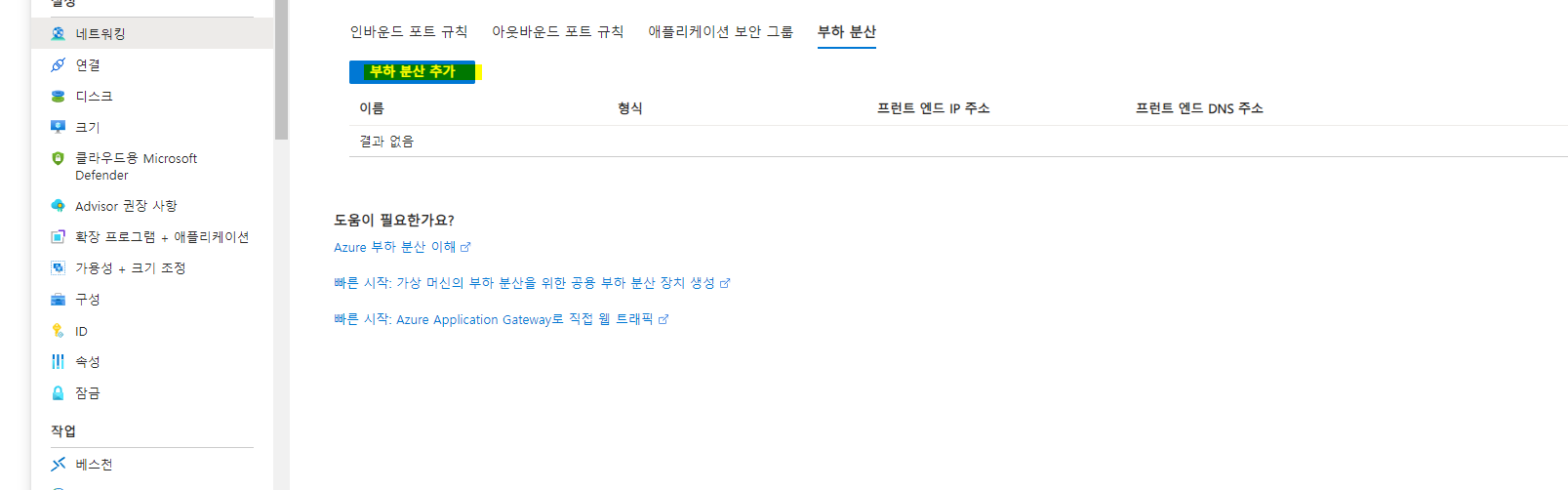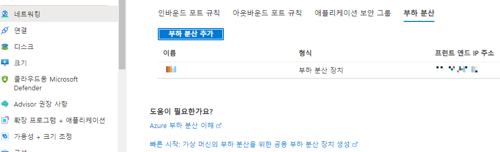 Azure 에는 로드밸런서라는 말이 없고, 대신에 부하 분산장치가 있어서 이거쓰면됨