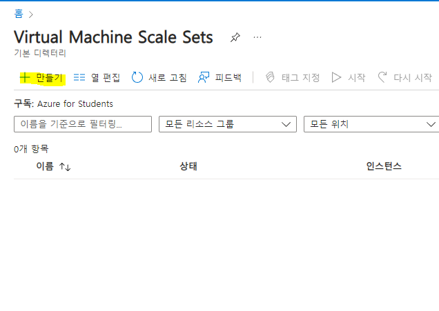 애저는 오토 스케일링이라는 단어가 없어서 Scale sets라고 애저 검색창에입력하면된다