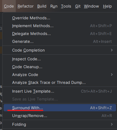 (= 상단메뉴 Code - Surround With... 클릭 )