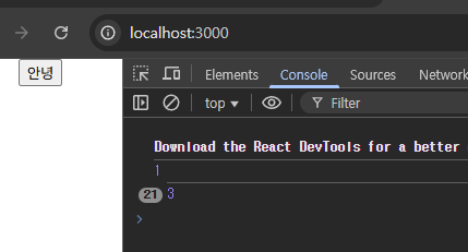 기본값3초기화후, 버튼클릭시 카운팅됨을 확인할수있다